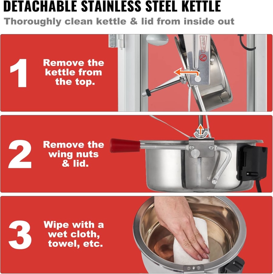 They’re simple. Add popcorn kernels and oil from a supply kit, flip the switch, and enjoy fresh popcorn in minutes.