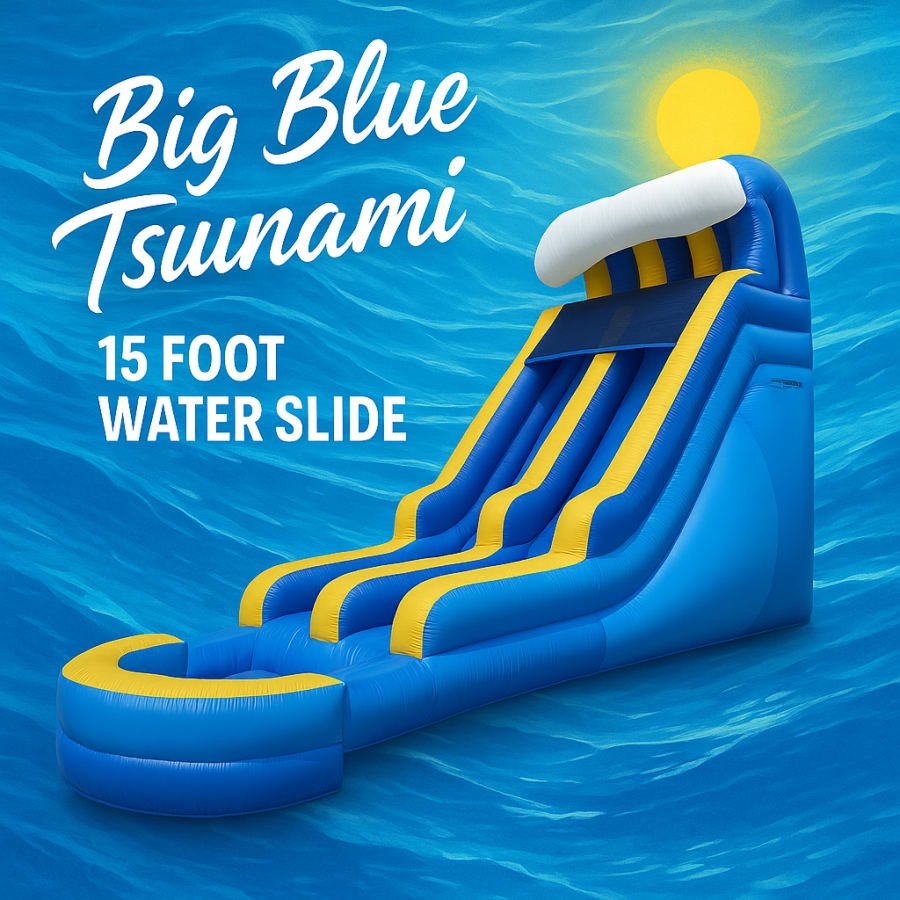 Beat the Florida heat with the Big Blue Tsunami! Standing 15 feet tall, this inflatable water slide’s crisp blue and white design brings the ocean vibe right to your backyard. Compact enough to fit most spaces, but big enough for nonstop excitement, the Big Blue Tsunami is a hit for birthdays, family gatherings, school events, and neighborhood parties.