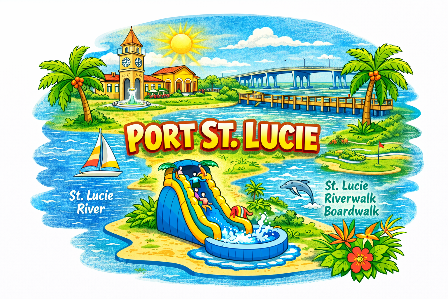 We proudly serve Port Saint Lucie and surrounding Treasure Coast communities, including Fort Pierce, Vero Beach, Jensen Beach, Stuart, and Palm City. All rentals are commercial-grade, professionally cleaned, and delivered with care. Our larger slides book quickly, especially on weekends, so reserving early is recommended.